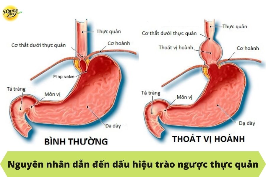 Nhưng đối với những người mắc dấu hiệu trào ngược thực quản, cơ hoành lúc này bị suy yếu cơ thắt thực quản và một ít của dạ dày sẽ bị nhô lên phía trên. Điều này sẽ khiến cho cấu trúc tự nhiên của dạ dày và thực quản không còn bình thường như trước nữa. Đồng nghĩa với việc người bệnh có thể sẽ xuất hiện các dấu hiệu của bệnh trào ngược thực quản.
