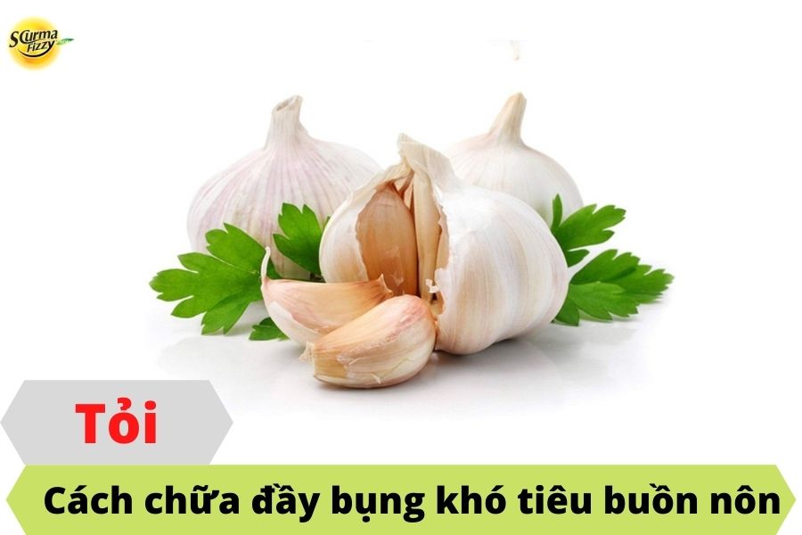 Từ thời xa xưa, tỏi được xem là một vị thuốc dân gian trong cách chữa đầy bụng khó tiêu buồn nôn. Vì khả năng kháng sinh tự nhiên, tăng cường hệ thống tiêu hóa và hỗ trợ điều trị chứng buồn nôn hiệu quả. Trong củ tỏi có chứa một lượng lớn chất allicin giúp tiêu diệt các vi khuẩn có hại gây ra hiện tượng đầy bụng. Cacbohidrat có trong tỏi giúp phân hủy lượng hơi sinh ra. Đồng thời, lượng vitamin và các khoáng chất có trong tỏi có tác dụng giúp dạ dày tiêu hóa dễ dàng hơn.