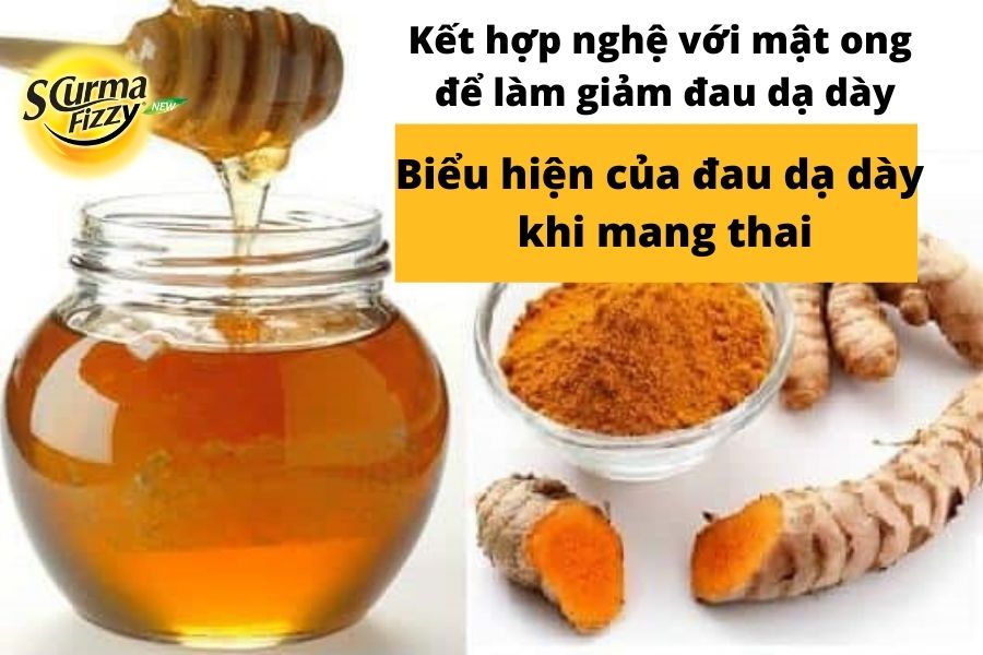 - Kết hợp nghệ với mật ong: đây là một phương pháp chữa đau dạ dày cực kỳ hiệu quả. Trong nghệ chứa: curcumin, beta-carotene có khả năng trung hòa acid dịch vị, giúp phục hồi các ổ viêm loét, vết thương khác, đặc biệt là thúc đẩy hoạt động của cơ quan tiêu hóa. Bên cạnh đó, mật ong có tác dụng kháng khuẩn cực tốt, nó giúp chống viêm, tiêu diệt các vi khuẩn có hại cho đường ruột, làm tăng tốc độ tái tạo bề mặt niêm mạc sau thương tổn. Các bạn có thể pha thành trà nghệ mật ong, rất dễ uống. Thời điểm tốt nhất cho bạn uống là vào buổi sáng, nó sẽ giúp phát huy tốt hiệu quả của nghệ và mật ong. Tuy nhiên, bạn cần lưu ý: nếu đã ăn sáng thì nên uống sau ăn 20-30 phút; không nên lạm dụng, có thể gây ra mất nước, táo bón, buồn nôn; nên hỏi ý kiến bác sĩ trước khi sử dụng nếu bạn bị vấn đề về máu.