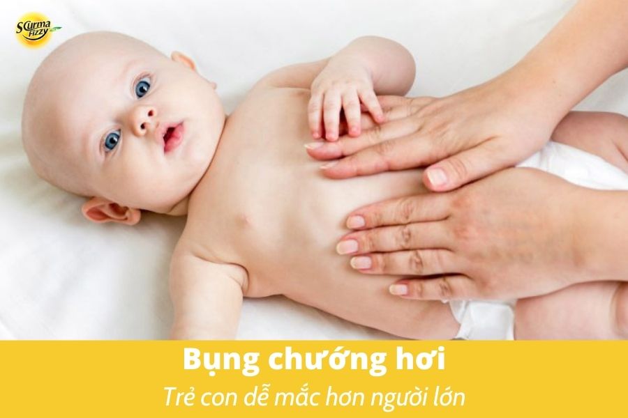 Do hệ tiêu hóa chưa phát triển toàn diện, thêm vào đó trẻ thường hay khóc, khi khóc vô tình sẽ khiến lượng không khí đi vào nhiều và thành hơi trong đường ruột nên trẻ em thường dễ bị bụng chướng hơi hơn nhiều so với người lớn.