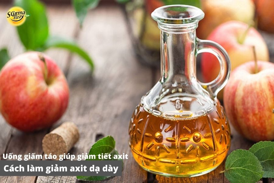 - Giấm táo (ACV) chứa axit axetic, là một thành phần có tính axit tự nhiên trong một số loại thực phẩm và đồ uống. Tuy nhiên, ACV là loại giấm duy nhất có tính kiềm, thực sự tốt cho chứng khó tiêu và đau bụng. Do đó, nó có thể nhanh chóng làm giảm chứng ợ nóng và được rất nhiều người ưa chuộng để là một cách làm giảm axit dạ dày.