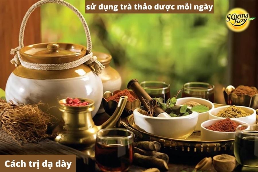 - Sử dụng trà thảo dược mỗi ngày là cách trị dạ dày đang được nhiều người áp dụng, vì đó là phương pháp dễ thực hiện, phù hợp với mọi đối tượng sử dụng. Các loại thảo dược trị dạ dày hiện nay rất đa dạng phong phú, có nhiều hương vị khác nhau phù hợp với mọi lứa tuổi. Ai cũng có thể chọn cho mình một loại trà với hương vị ngon nhất để tạo thói quen uống trà hàng ngày, giúp tăng cường hiệu quả điều trị dạ dày.
