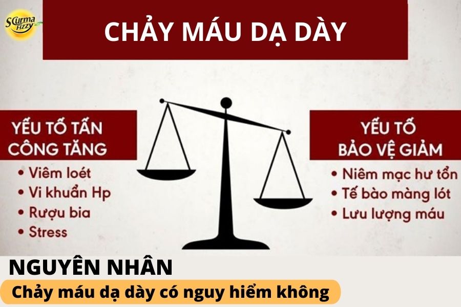 Chảy máu dạ dày xảy ra khi chức năng hoạt động của dạ dày bị suy giảm. Trong trường hợp này, các yếu tố bảo vệ dạ dày không thể chống lại được các yếu tố tấn công như sự hiện diện của vi khuẩn Helicobacter Pylori, ảnh hưởng từ thói quen sống không lành mạnh sử dụng nhiều chất kích thích và một số bệnh lý dạ dày khác.