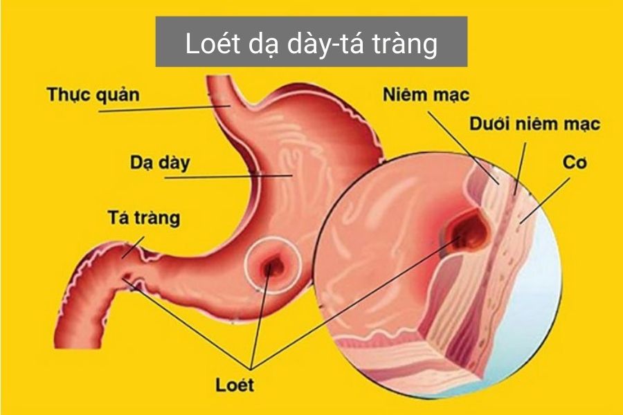 Viêm, loét dạ dày là sự hình thành ổ loét lớp niêm mạc dạ dày – tá tràng, ổ loét này có thể xâm lấn sâu hơn qua dưới lớp niêm mạc.