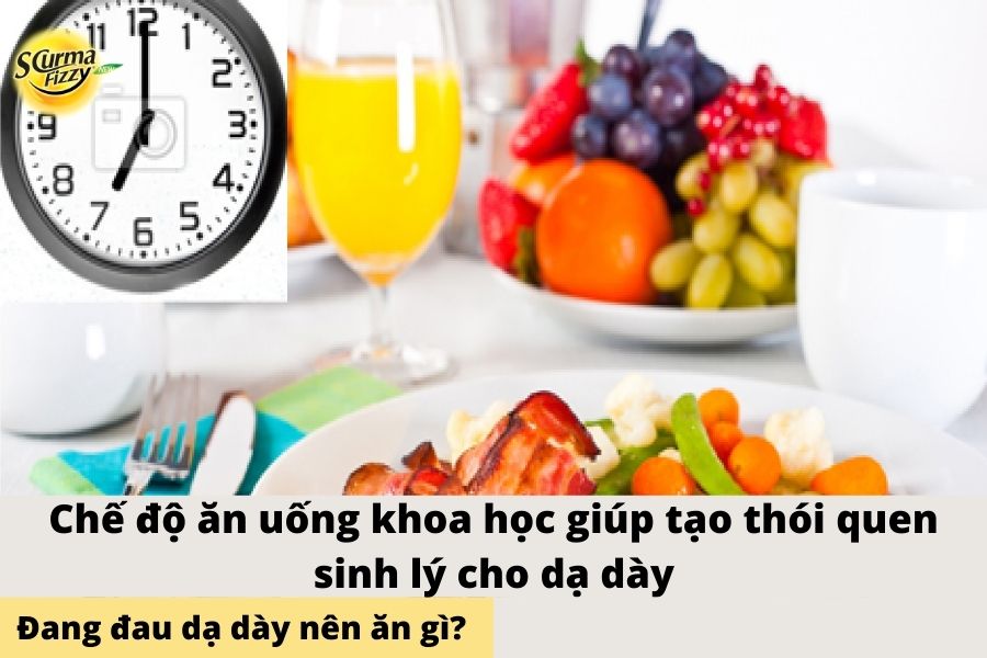 Chế độ ăn uống cũng là một yếu tố góp phần tạo nên nhịp sinh học của cơ thể con người. Người bệnh nên ăn uống đúng giờ, đủ giấc, tránh bỏ bữa và nhai kỹ, không nên vuốt vội vàng. Việc ăn các bữa ăn chính xác vào một khung giờ giúp tạo thói quen sinh lý cho dạ dày. Từ đó, hệ thống tiêu hóa được hoạt động đúng cách và trơn tru hơn.