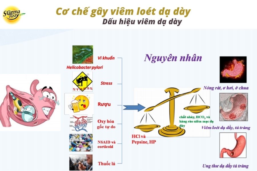 Tác nhân gây bệnh viêm loét dạ dày luôn thường trực xung quanh chúng ta. Từ những thói quen ăn uống, sinh hoạt tưởng chừng như vô hại cũng chính là những yếu tố bổ trợ làm cán cân cân bằng acid trong dạ dày bị mất kiểm soát. Lâu dần như một sợi dây chun đã bị giãn, cán cân ấy không thể trở lại trạng thái cân bằng từ đó gây ra những biến chứng của viêm dạ dày.