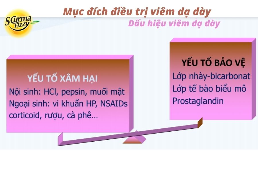 Mục tiêu của điều trị viêm dạ dày là làm giảm những yếu tố tấn công và làm tăng những yếu tố bảo vệ. Một số loại thuốc có tác dụng làm giảm những yếu tố tấn công thường dùng hiện này là thuốc ức chế bơm proton, thuốc kháng histamin H2, thuốc kháng gastrin, thuốc diệt HP,… Và Sucralfat, hợp chất bismuth, misoprostol là những thuốc có tác dụng làm tăng hoạt động của những yếu tố bảo vệ.