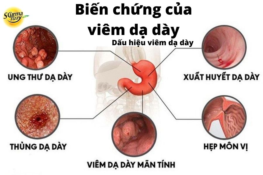 Một số biến chứng hay gặp khi tình trạng viêm dạ dày nghiêm trọng là xuất huyết dạ dày, thủng dạ dày, hẹp môn vị.