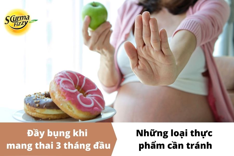 Những người phụ nữ đang trong thời kỳ mang thai nên loại bỏ các loại thức ăn và đồ uống có thành phần đường tinh luyện như: nước ép trái cây ngọt, đồ uống có gas,… ra khỏi chế độ ăn của mình bởi các loại thức ăn, đồ uống có chứa đường tinh luyện sẽ chứa fructose sẽ càng làm trầm trọng thêm triệu chứng đầy bụng khi mang thai 3 tháng đầu.