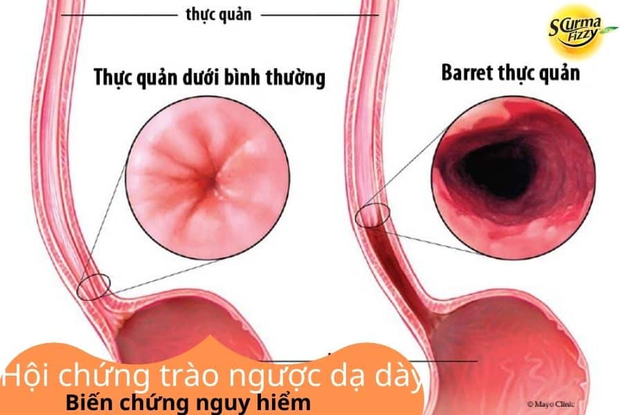 Đây là biến chứng nguy hiểm của hội chứng trào ngược dạ dày thực quản, có tới 8-15% bệnh nhân gặp phải biến chứng này. Dịch acid dạ dày làm thay đổi cấu trúc niêm mạc thực quản, tiến hành nội soi thực quản sẽ thấy rõ điều này.