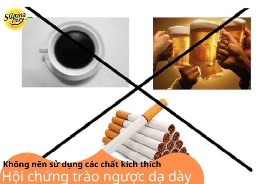 Hầu hết những người mắc hội chứng trào ngược dạ dày là do ăn uống không lành mạnh. Sử dụng quá nhiều các chất kích thích như: Cafe kích thích dạ dày tiết acid vì trong cafe có caffeine gây giãn cơ vòng tại tâm vị, đây cũng là tác nhân gây khởi phát cơn đau thượng vị. Rượu,bia gây giãn cơ thắt thực quản bên dưới làm cho triệu chứng ợ nóng xuất hiện