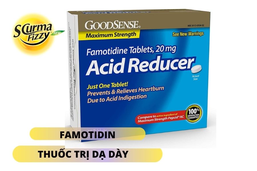 – Mỗi viên nén chứa famotidine 20 mg. Thuốc có tác dụng làm giảm nồng độ axit và pepsin của dịch vị ở dạ dày.