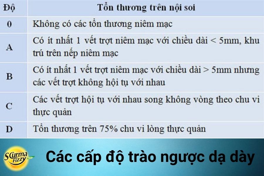 - Mức độ D: Niêm mạc thực quản bệnh nhân có tổn thương nghiêm trọng với hơn 75% bề mặt, với các viêm loét sâu