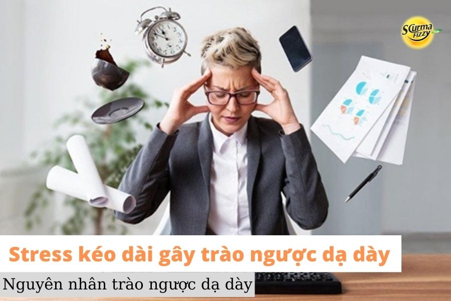 Việc phải trải qua những lo âu, căng thẳng quá mức trong một thời gian dài sẽ khiến bạn bị stress. Điều này là một trong những nguyên nhân có thể dẫn đến hiện tượng dạ dày thực quản bị trào ngược. Bởi căng thẳng quá mức và stress kéo dài sẽ kích thích cơ thể tăng bài tiết một loại hormon thượng thận là “Cortisol”. Hormon này không chỉ ức chế các phản ứng bảo vệ dạ dày theo cơ chế tự miễn mà còn có khả năng kích thích làm tăng sản sinh acid HCl và pepsin trong dạ dày. Lượng pepsin được tiết ra sẽ phá hủy lớp nhầy bảo vệ niêm mạc thực quản, tạo cơ hội cho acid HCl trào ngược lên trên. Không những thế pepsin còn gây áp lực lên cơ thắt dưới thực quản khiến nó bị suy yếu và làm tình trạng trào ngược ngày càng nghiêm trọng hơn. Như vậy, stress và căng thẳng quá độ kéo dài không chỉ là tác nhân gây bệnh mà còn là một “chất xúc tác” đẩy nhanh tốc độ phát triển của bệnh theo chiều hướng ngày càng xấu đi.
