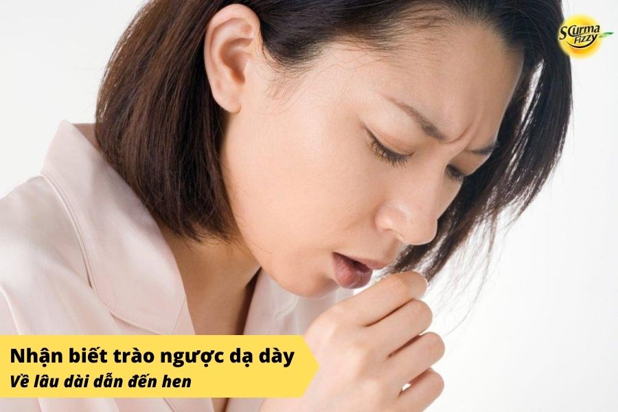 Điều này khiến cho những giọt axit có thể bị đọng lại ở vùng cổ họng hoặc thanh quản và về lâu dài có thể dẫn đến các cơn hen.