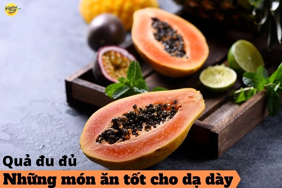 Enzyme papain trong quả đu đủ có lợi cho hệ tiêu hóa. Enzyme này giúp hạn chế vi khuẩn, virus gây bệnh, có thể hỗ trợ chứng đau dạ dày. Ngoài ra, đu đủ còn tạo cảm giác dễ chịu cho dạ dày, giảm bớt các triệu chứng đầy bụng khó tiêu và kích thích hệ tiêu hóa. Người bị đau dạ dày chỉ nên ăn đu đủ đã chín để không bị phần nhựa quả làm đau bụng.