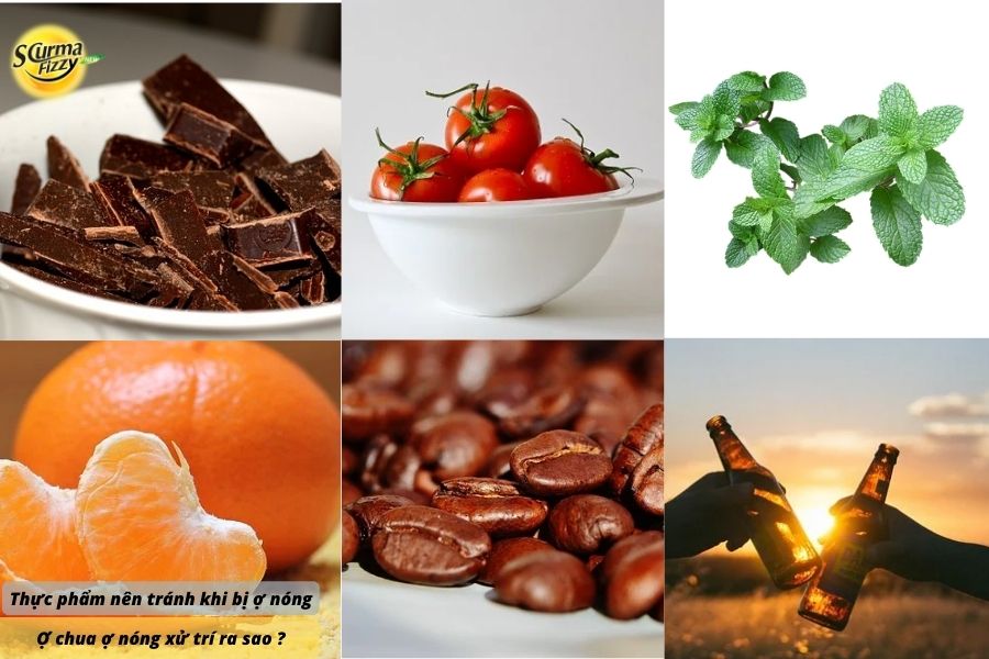 - Sử dụng một số loại thức ăn, đồ uống: cà phê chứa caffeine, bạc hà, hành, , cà chua, hoa quả họ cam, quýt, sô cô la hoặc rượu, bia, đồ ăn cay nóng, nhiều chất béo.