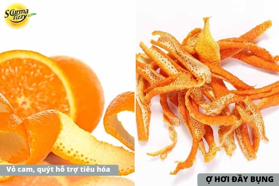Trong vỏ các cây họ Cam có chứa nhiều tinh dầu có tác dụng hỗ trợ tốt cho đường tiêu hóa. Khi bị ợ hơi đầy bụng bạn chỉ cần nhai một miếng vỏ quýt khô , tình trạng đầy hơi sẽ biến mất sau khoảng 15-30 phút. Để dễ dàng sử dụng hơn thì bạn có thể thái nhỏ vỏ quýt tươi ngâm với mật ong và bảo quản nơi mát để sử dụng lâu dài hơn.