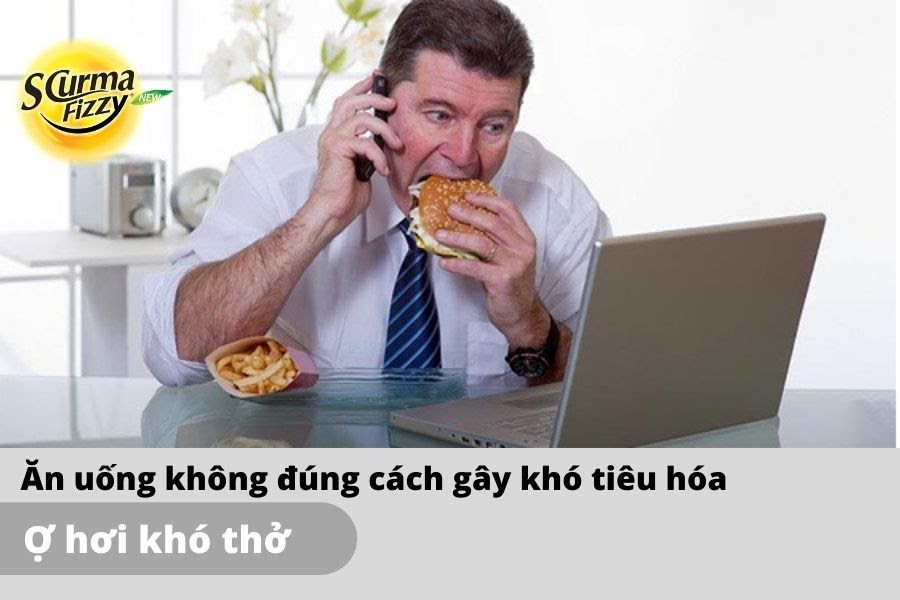 Ăn quá nhanh, nhai không kỹ, vừa ăn vừa nói,… khiến cho dạ dày khó tiêu hóa thức ăn gây cảm giác khó tiêu, chướng bụng dẫn tới ợ hơi khó thở.