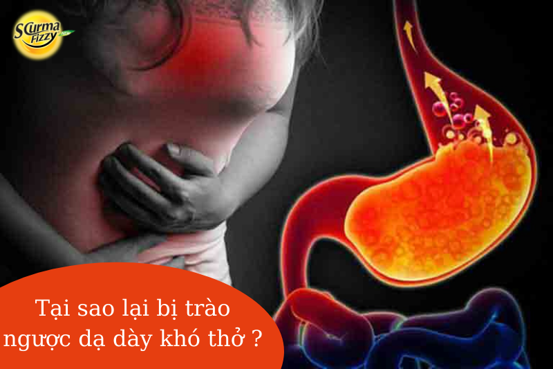 Hệ thống thần kinh vùng cổ họng và thực quản dễ bị kích thích bởi dịch vị dạ dày sau đó tác động lên các cơ ở vùng ngực gây co rút, chèn ép tăng áp lực đường thở dẫn đến khó thở.