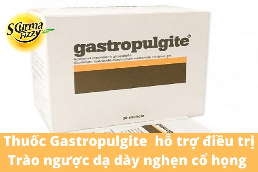 Gastropulgite: thuốc có dạng bột pha được sử dụng để điều trị các bệnh lý liên quan đường tiêu hóa. Thuốc có tác dụng trung hòa acid dịch vị, làm giảm các triệu chứng nghẹn cổ họng, ở nóng,… gây ra bởi trào ngược dạ dày thực quản. Hơn nữa, thuốc cũng giúp làm lành vết loét, tạo lớp màng bảo vệ niêm mạc thực quản và dạ dày, ngăn ngừa biến chứng.