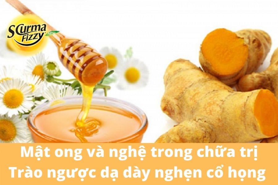 Mật ong và nghệ: Nhiều nghiên cứu chỉ ra rằng nghệ và mật ong có tác động tích cực trong việc trung hòa acid dịch vị, kháng khuẩn, kháng viêm làm giảm các triệu chứng do trào ngược dạ dày thực quản. Các phối hợp sử dụng nghệ và mật ong: Pha 1 thìa mật ong, 3 thìa bột nghệ với 100ml nước ấm, khuấy đều cho hỗn hợp hòa quyện vào nhau rồi uống. Duy trì thói quen này 3 lần mỗi ngày trước các bữa ăn 30 phút giúp cải thiện chức năng, phòng ngừa các bệnh liên quan đường tiêu hóa.