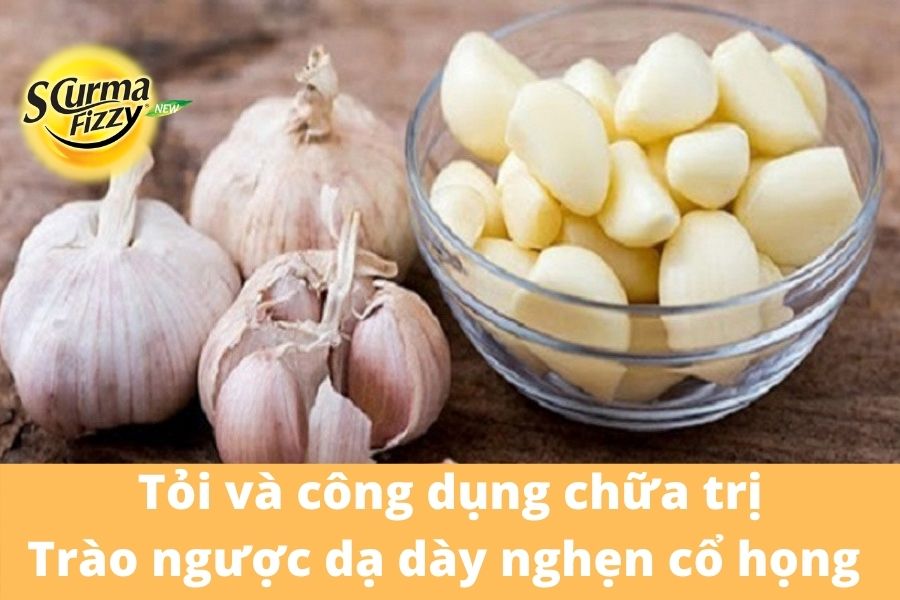 Tỏi: không chỉ nổi bật bởi tác dụng diệt khuẩn mà còn có tác dụng chống viêm loét dạ dày thực quản, cải thiện các triệu chứng gây ra bởi trào ngược dạ dày thực quản như nghẹn cổ họng, ợ hơi, khó tiêu,… Cách dùng : Tỏi bóc bỏ vỏ, rửa sạch, nghiền nát, đem ngâm với mật ong theo tỉ lệ 15g tỏi thì ứng với 100ml mật ong, sau 3 tuần thì có thể sử dụng. Nên dùng 1 thìa tỏi ngâm mật ong trong các bữa ăn.