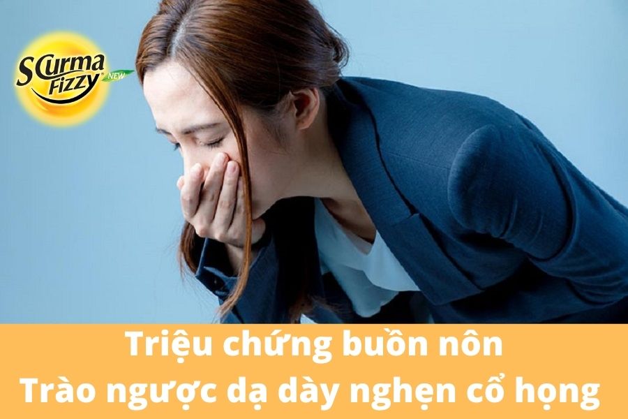 Người bệnh trào ngược dạ dày sẽ có cảm giác buồn nôn khi ăn quá no, ăn thức ăn có tính acid và ăn thức ăn cay nóng, cúi người hay nằm ngay sau khi mới ăn xong. Nếu xuất hiện triệu chứng nôn ra máu, điều này báo hiệu bệnh trào ngược dạ dày đã tiến triển đến giai đoạn nặng, có biến chứng viêm loét chảy máu niêm mạc thực quản.