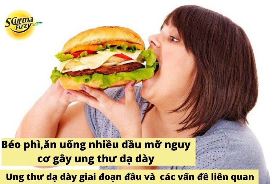 Béo phì là một vấn đề ngày càng gia tăng trong xã hội hiện đại và có liên quan đến một loạt bệnh, bao gồm ung thư dạ dày tim. Những người có chỉ số BMI từ 30 đến 35 có gấp 2 lần so với những người có chỉ số BMI là > 40 có nguy cơ ung thư dạ dày gấp 3 lần. Béo bụng có thể trực tiếp gây ra hội chứng trào ngược dạ dày thực quản (GERD), một yếu tố nguy cơ đối với ung thư dạ dày.