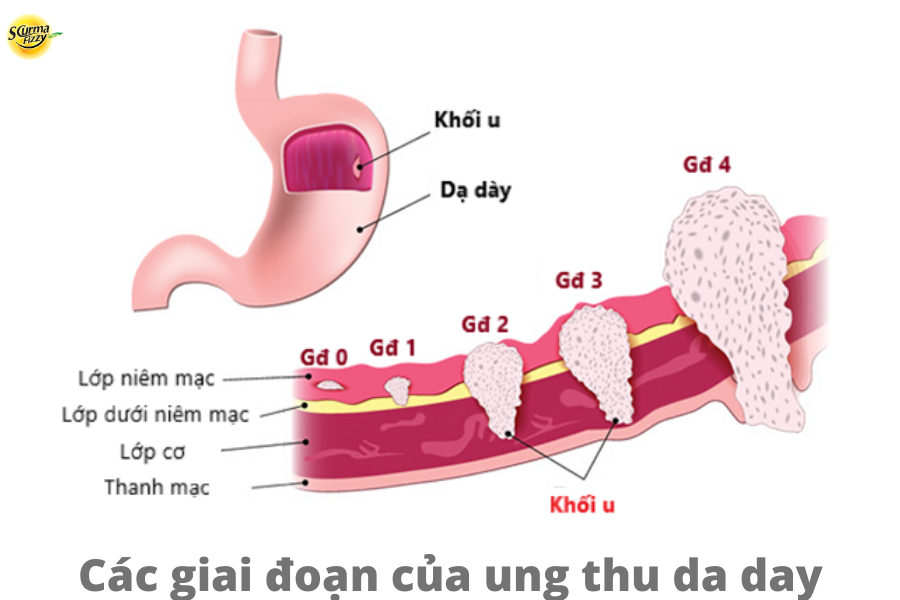 Thành dạ dày được cấu tạo thành 5 lớp mô. Từ lớp trong cùng đến lớp ngoài cùng, các lớp của thành dạ dày là: niêm mạc, lớp dưới niêm mạc, cơ, mô liên kết và thanh mạc. Ung thu da day là sự hình thành của các tế bào ung thư, bắt đầu từ lớp niêm mạc trong cùng và lây lan dần qua các lớp bên ngoài khi nó phát triển qua các giai đoạn về sau.Tế bào này dễ tiến triển và tạo thành khối u. Bệnh ung thu da day thường phát triển chậm trong nhiều năm.