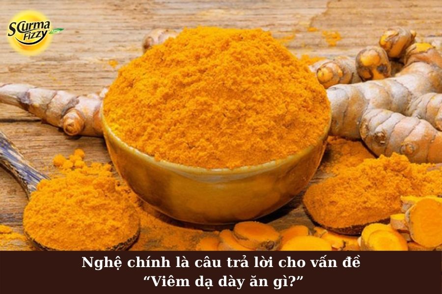 Nghệ chính là câu trả lời cho vấn đề “Viêm dạ dày ăn gì?”. Curcumin có bên trong củ nghệ có công hiệu kháng viêm cực tốt, giúp ngăn chặn các vi khuẩn khiến cho dạ dày kích ứng và làm giảm tấn số, cường độ các cơn đau đồng thời thúc đẩy quá trình làm lành vết thương ở dạ dày.
